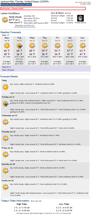 Weather is a leading draw of people to websites. If you have a great weather site your visitors will stay longer and be more satisfied with your site. Now your site, no matter what size, can afford custom weather pages that will blend right in with your existing content and draw people back to your site again and again. And you'll keep people on your site with all the information (no links off to other weather sites).